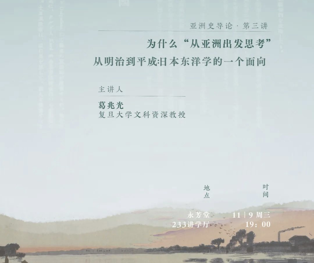 • 纪要·逸仙进阶讲堂 亚洲史导论丨【3】葛兆光:为什么“从亚洲出发思考”?——从明治到平成:日本东洋学的一个面向 2022年11月9日晚,中山大学人文高等研究院逸仙进阶讲堂系列课程之一“亚洲史导论”第三讲在中山大学南校园永芳堂233讲学厅举行。复旦大学文史研究院及历史学系特聘资深教授葛兆光老师通过线上授课的方式主... 2022-11-28