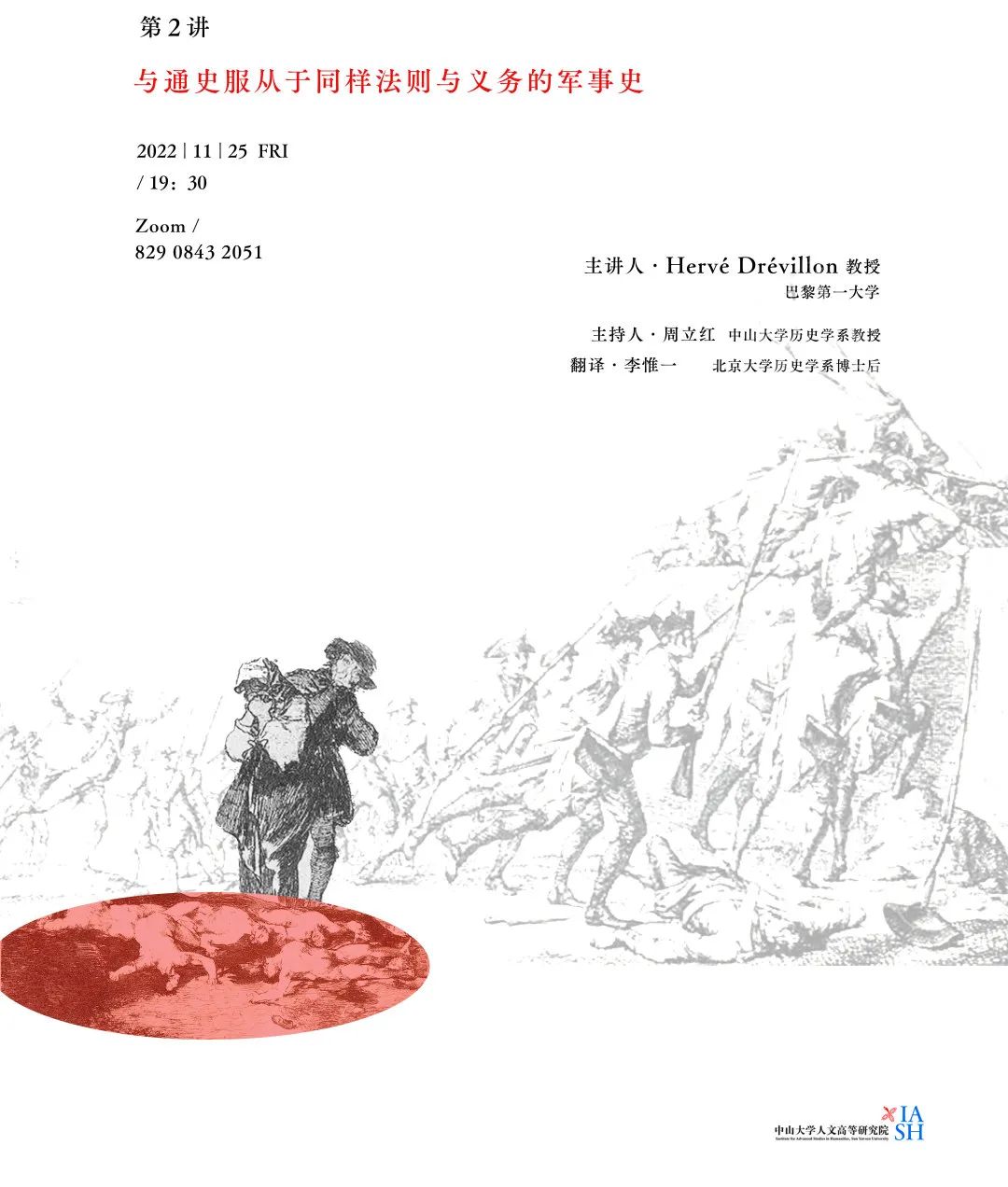 2022学年秋季学期,中山大学人文高等研究院将主办“法兰西史学的新面向”系列讲座,邀请巴黎第一大学Pierre Serna教授、巴黎第一大学Hervé Drévillon教授、浙江大学吕一民教授、浙江大学沈坚教授主讲相关专题。系列讲座第二讲“与通史服从于同样法则与义务的军事史”将在本周五由Hervé Drévillon教授主讲,敬请各位师友关注本次系列讲座。