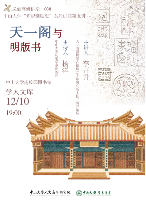 • 2025-12-10 逸仙高研讲坛 |【预告】李开升:天一阁与明版书
