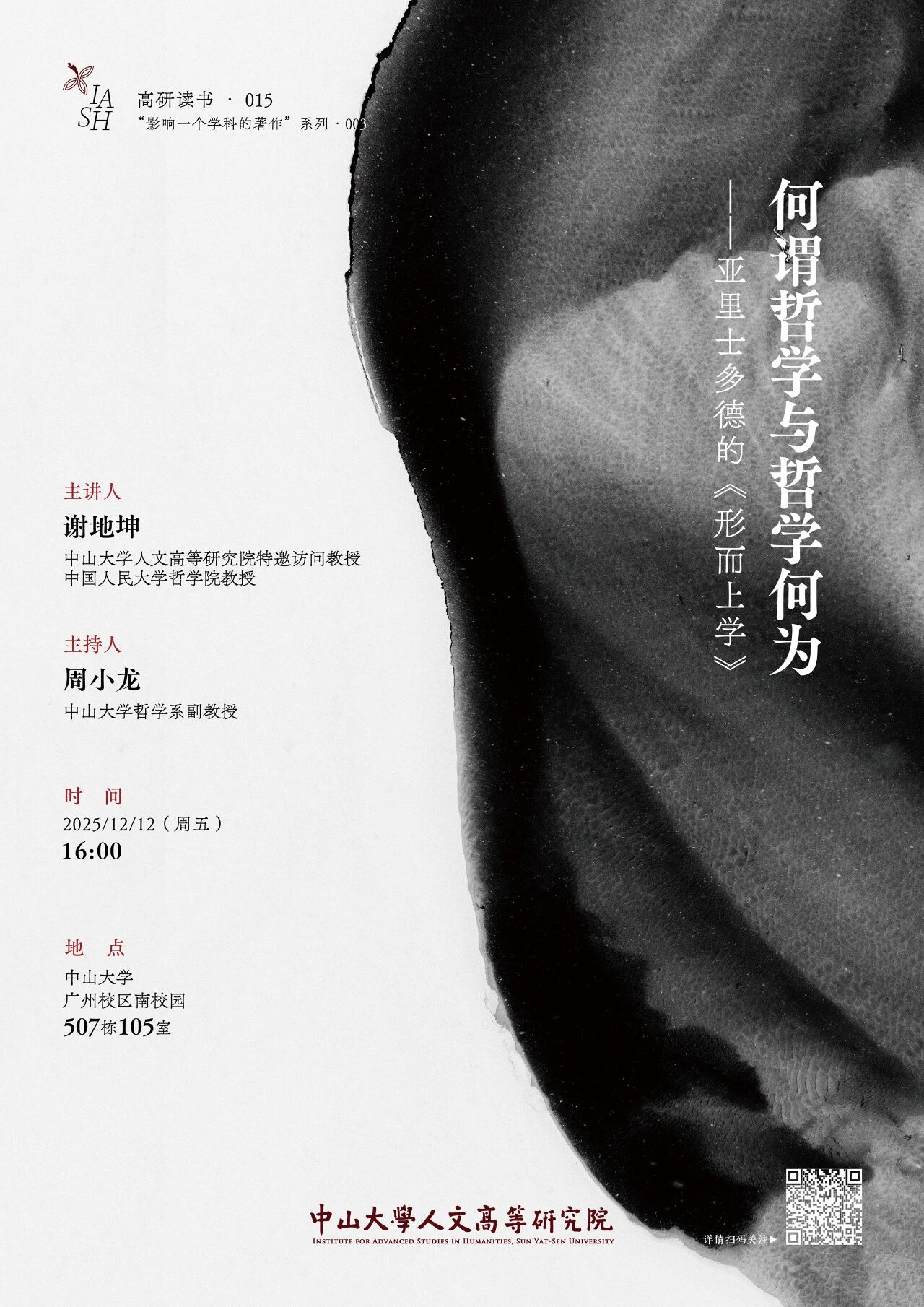 • 2025-12-11 高研读书 |【预告】谢地坤:何谓哲学与哲学何为——亚里士多德的《形而上学》