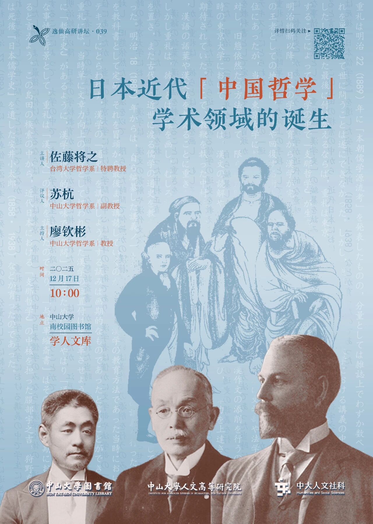 • 2025-12-16 逸仙高研讲坛 |【预告】佐藤将之:日本近代“中国哲学”学术领域的诞生